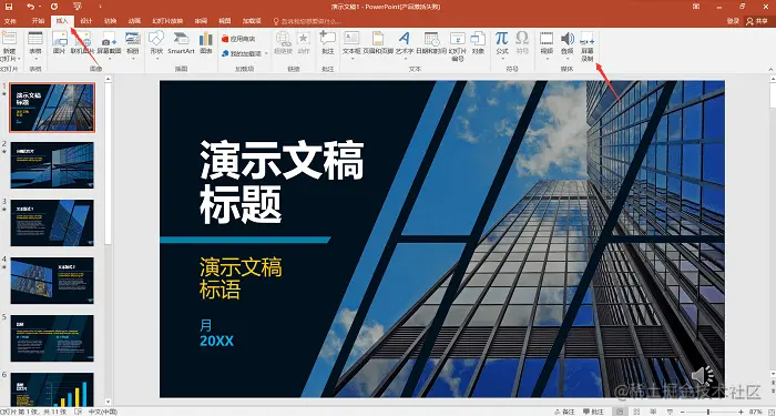 如果您是学生或者是学员,有录制网课课程视频的需求。可以使用PPT的【屏幕录制】来录制网课视频,是免费的课程录播软件。在教师讲课前,可以任意打开一份PPT文件,然后在PPT文件上点击【插入】功能,并再点击【插入】功能栏下方的【屏幕录制】功能。最后,调整录制区域,开始录制课程视频内容。