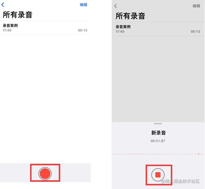 **步骤2:**如果需要录音,则点击下方的红色实心圆圈按钮,开始录音。想要结束录制时,点击红色实心正方形按钮就可。