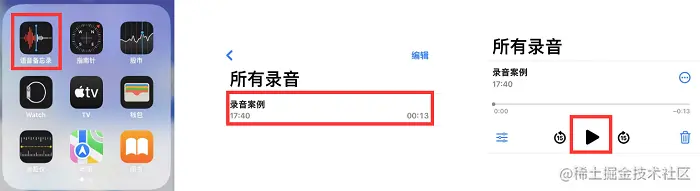 **步骤1:**打开【语音备忘录】,就可以找到苹果手机上所有的录音文件。点击录音文件,我们可以进行播放等操作。