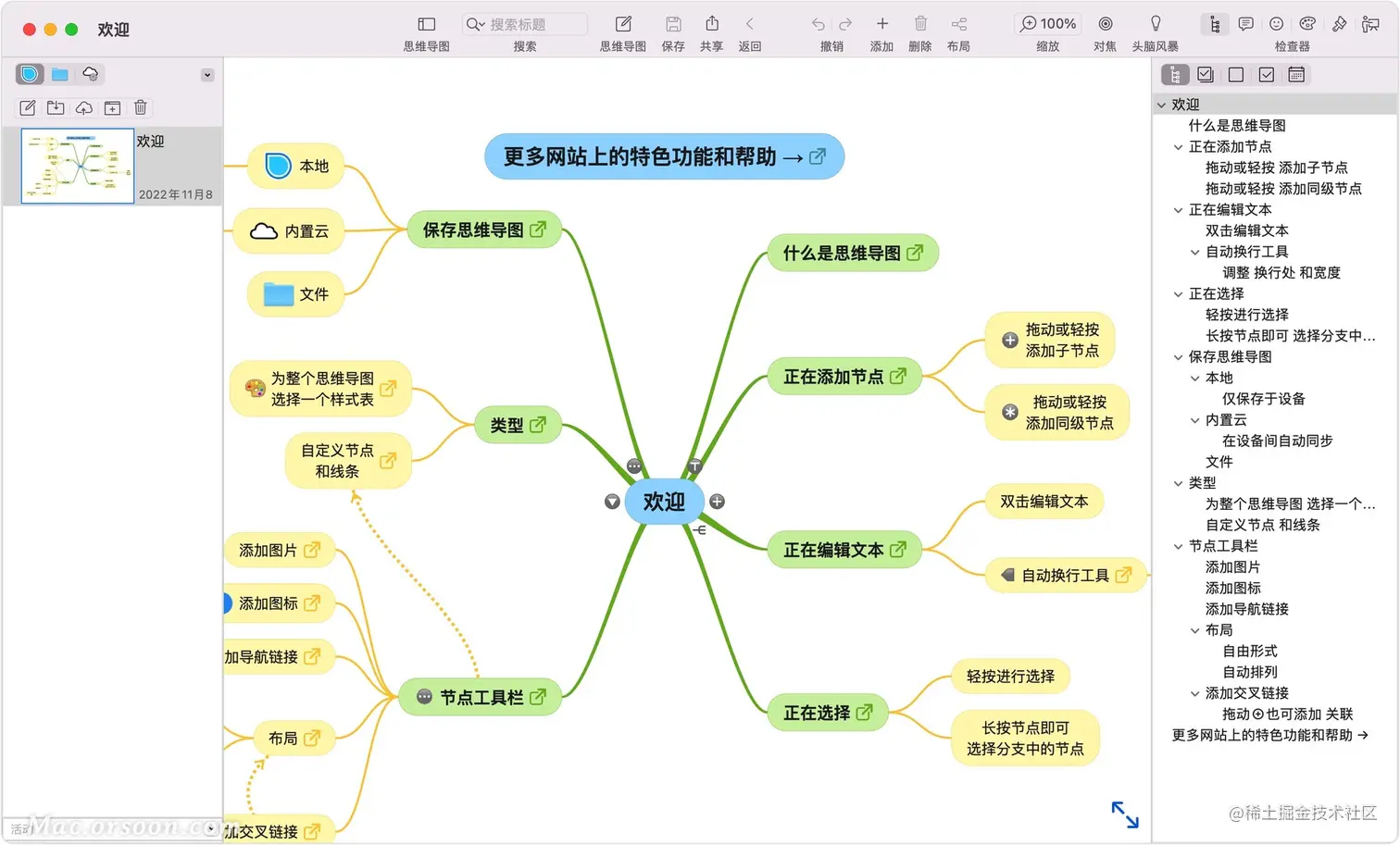 SimpleMind Mac版是Mac os系统上的一款可以自由摆放每个节点, 而且可以单独移动某个节点, 或者按住后自动全选该节点及所有的从属节点使之一并移动。中心节点没有这个特点,不能够点选所有节点。SimpleMind Free Mac版里面移动所有节点很简单,点击随便一个连线就能移动所有节点。自由摆放节点是我最爱的功能,记录之后回顾的时候能够将各个节点重新摆放在合适的位置,使得节点间的关系更加明晰。