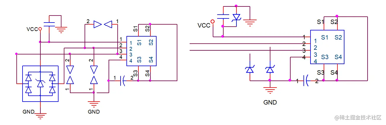 1) 对于5V电源线的防护,无论有没有防护器件,必须要在端口处加对地去耦电容,用于ESD的回流作用。