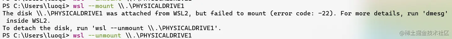# 卸载指令是 wsl --unmount \.\PHYSICALDRIVE1