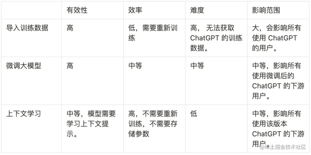 - 微调 ChatGPT 或者 ChatGPT 背后的 LLM,这依然极具挑战。但是如果 OpenAI 提供微调的 API ,或者你有充足的 GPU 资源和知识储备,这也是可行的。