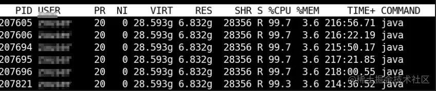 如果确定该pid是自己的服务,然后使用如下命令查看java哪个线程cpu占用高 top -H -p 。