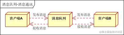 客户端 A 和客户端 B 使用同一队列,进行消息通讯。