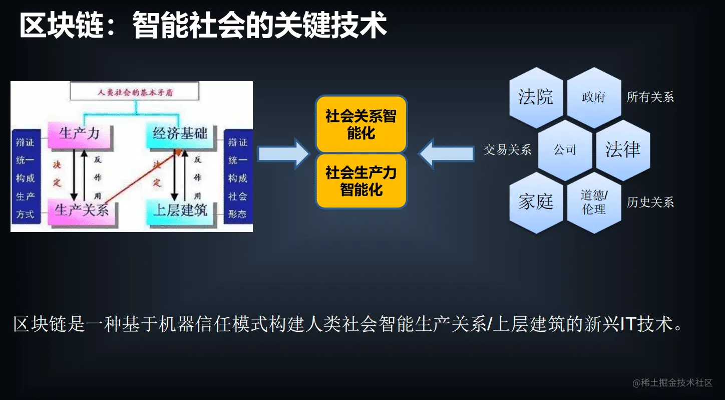 - 新区块链作为智能社会的关键支撑技术之一,其核心价值时实现社会关系运行的智能化,具有巨大的产业发展机遇