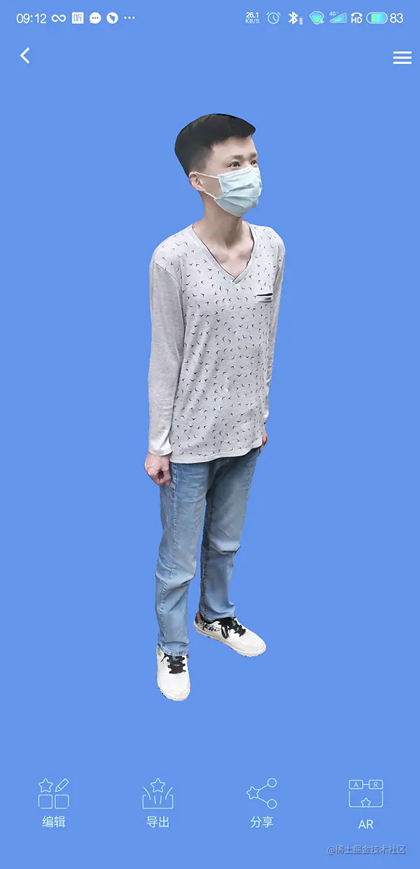 易模人像建模流程简单,操作者环绕模特拍摄一周后自动上传、自动建模,建模处理完毕。人像建模过程大约几分钟,在等待自动建模过程中,可多拍几次,得到自己想要的模型。当人像模型已经处于“可下载”状态,就可以下载模型并查看,或者进行编辑、分享,也可以导入至电脑做其他操作。