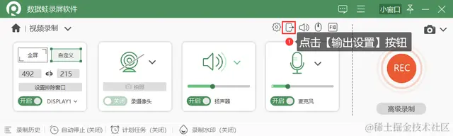 备注:win7电脑怎么录制不同参数的视频?默认视频格式为MP4;编码器为H.264+ACC;输出质量为标准质量。可以通过点击【视频录制】页面右上角的【输出设置】按钮,在【设置】页面对它们进行修改。