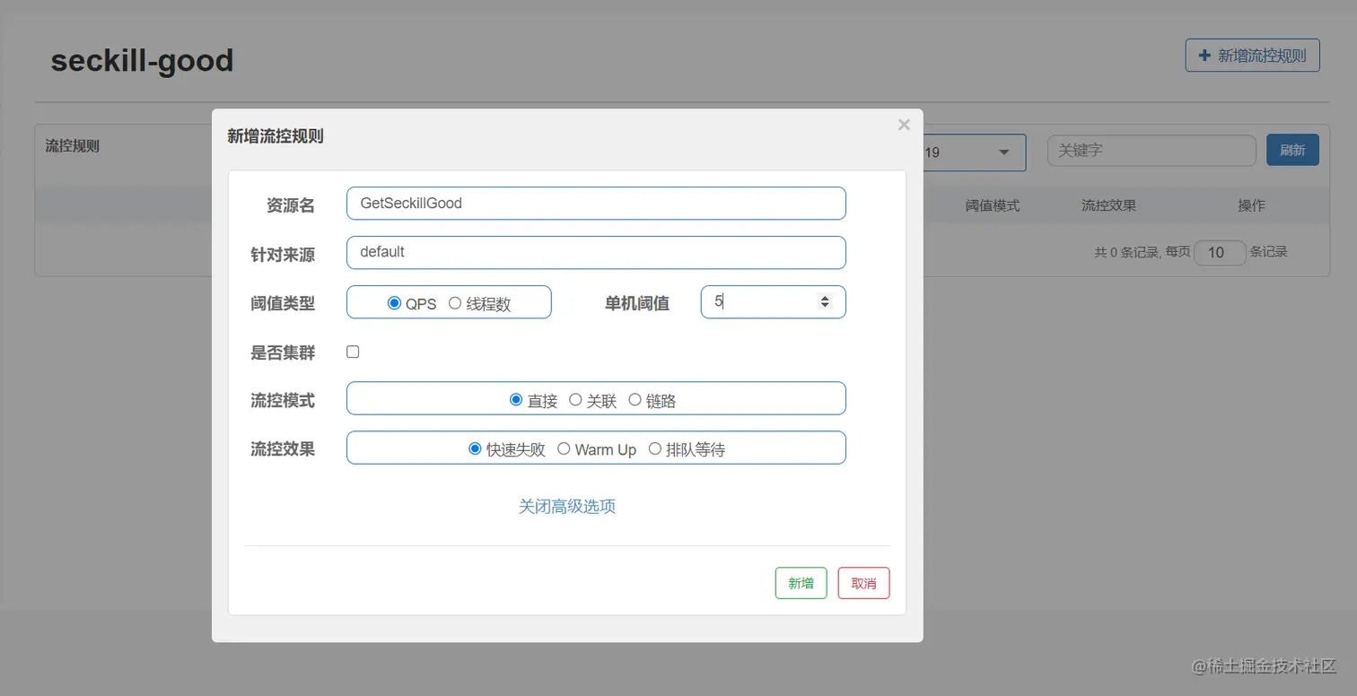 客户端新增流控规则