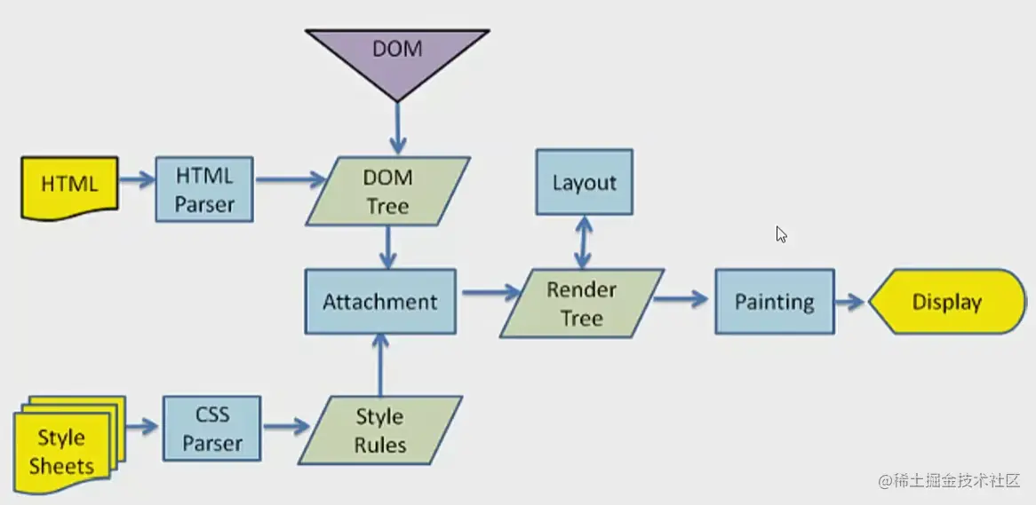 - 绘制。遍历render Tree,并调用硬件图形API来绘制每个节点到页面上