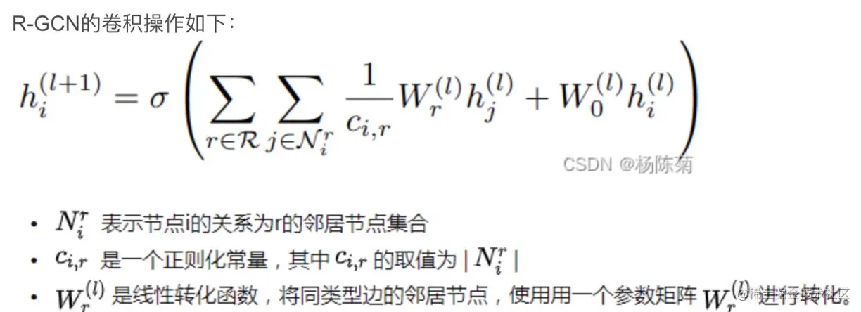 其中:R 的个数也就是边类型的个数,论文中称为relation-specific。 其区别在于RGCN中,通往一个节点的不同边可以代表不同的关系。