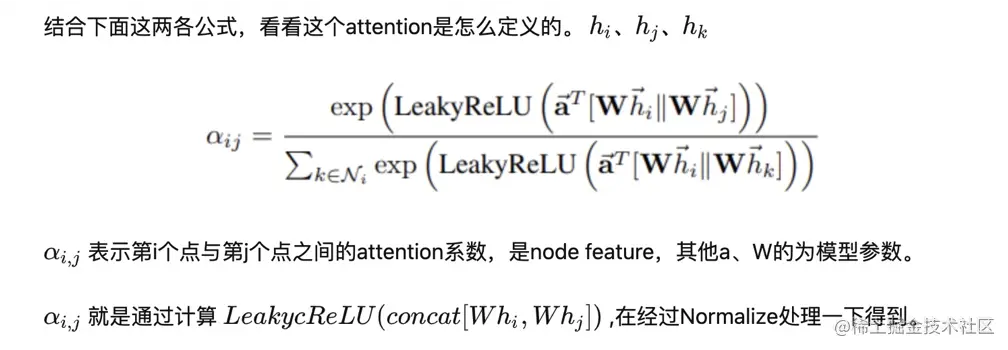 首先说说GAT,我们知道 GCN每次做卷积时,边上的权重每次融合都是固定的,可以加个 Attention,让模型自己学习 边的权重,这就是GAT网络了,下面是 核心Attention 的定义公式: