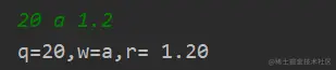 printf("q=%d,w=%c,r=%5.2f\n",q,w,r);