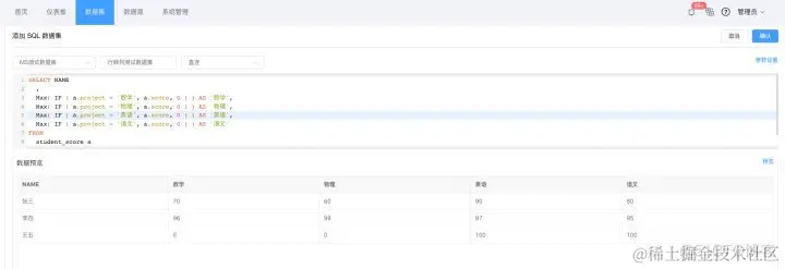 5、根据行转列sql添加SQL数据集合(详细操作查看DataEase官方文档)