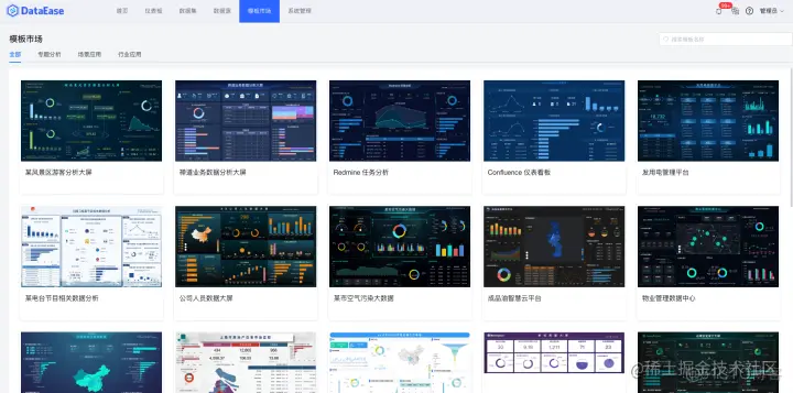 四、DataEase还有一个更加人性化的设计,那就是提供了免费且丰富的模板市场,使用方便又美观