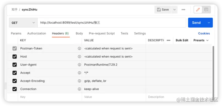 单用户同步请求接口地址:http://IP地址:8099/test/sync/zhiHu/用户名
