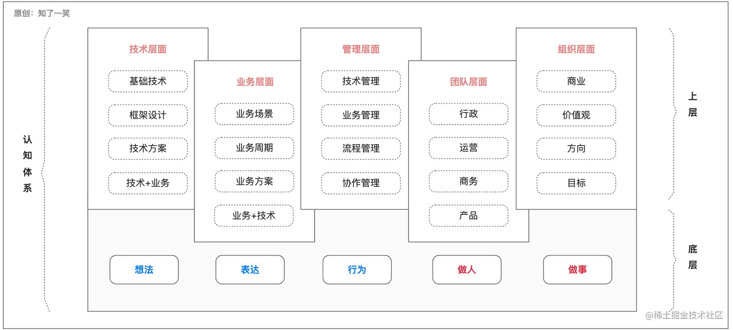 最后以说人话的方式来描述,认知就是想法、表达、行为;直接体现就是做人和做事;