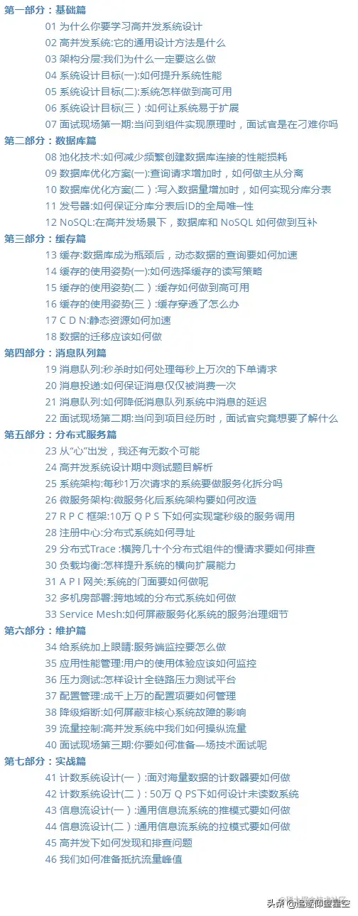 综上,便是这份 最强 “高并发” 系统设计46 连问 的全部内容,篇幅有限不多说,图片只能知道大概的内容。