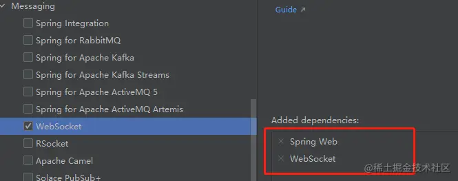 1、新建SpringBoot工程,选择web和WebSocket依赖
