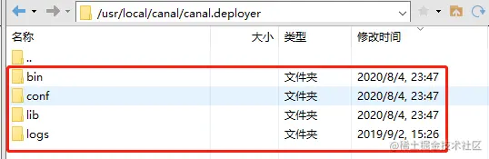解压canal.deployer-1.1.4.tar.gz,我们可以看到里面有四个文件夹:
