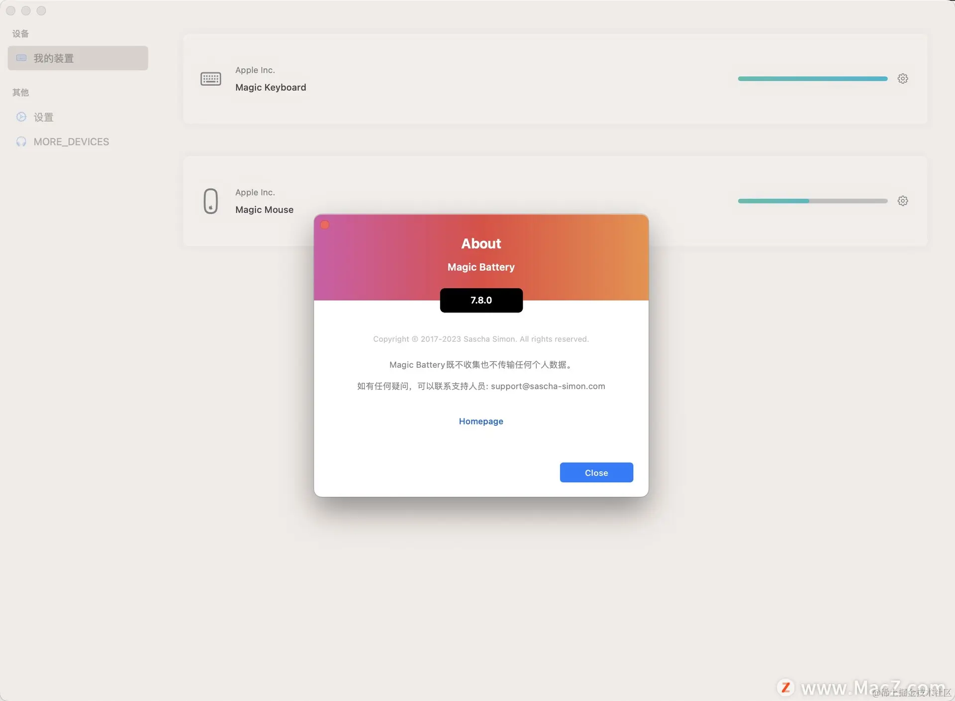 Magic Battery for Mac(电量显示工具) 用户4379107122725 2023-01-12 85 阅读1分钟 Magic Battery Mac版是Mac上的一款电量显示工具。Magic Battery Mac版可以帮助用户显示当前通过蓝牙连接到Mac电脑上的设备的当前电量状况。会在菜单栏中显示通过蓝牙连接的受支持的输入设备和耳机的电池电量。 Magic Battery for Mac(电量显示工具)