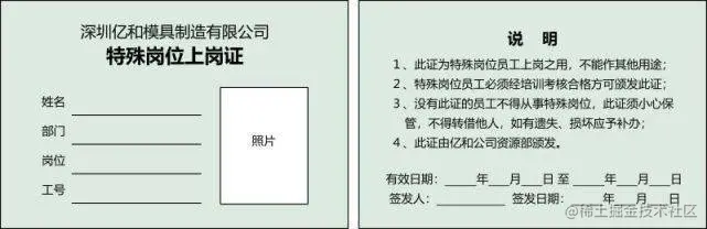 比如上岗证,员工经企业内部培训合格后,由人事部门颁发此证,证明员工可以胜任指定岗位的要求,在单位内部流通使用。但仅凭上岗证,实际上并不能对员工的身份、资质等信息当场进行有效核实,最终还是需要向人事调阅档案才能稽核。如果员工遗失了自己的证件,或者离职时未退回证件,原始证件可能会被他人冒用,存在管理上的漏洞。