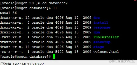 执行安装命令,进入到解压的database目录中,执行命令 ./runInstaller