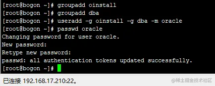 当数据库创建完成后,利用oracle用户打开终端,执行相关命令验证数据库状态。