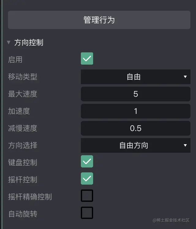 来看一下这块积木的应用,首先,我们给小怪兽增加一个“方向控制”行为,可以让它在地图中向任意方向移动。