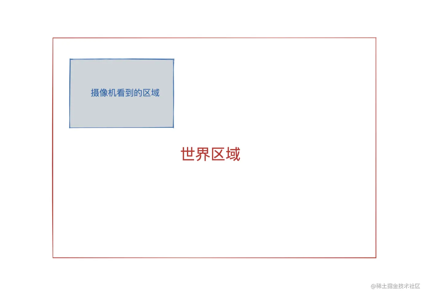 举个例子方便理解,你可以把自己的眼睛想象成摄像机,你眼睛看到的画面就是摄像机拍摄到的区域。现在把你扔到一个房子里,那你现在是不是就只能看到房子里面的东西啦!这个房子的区域就是摄像机的世界区域。