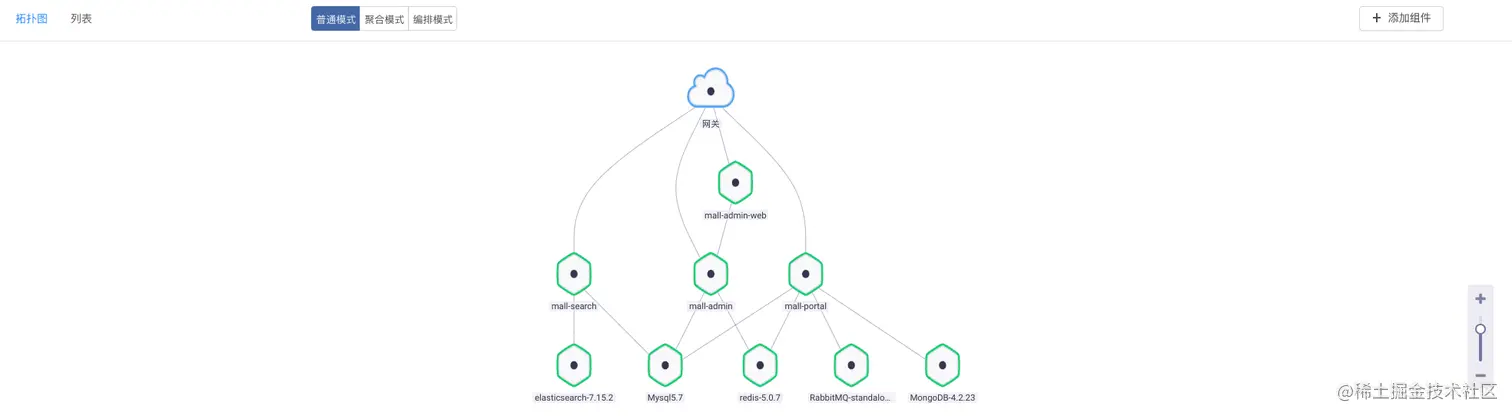 此时 Rainbond 会自动构建、启动 mall 所有服务,只需等待即可,部署完成后拓扑图如下: