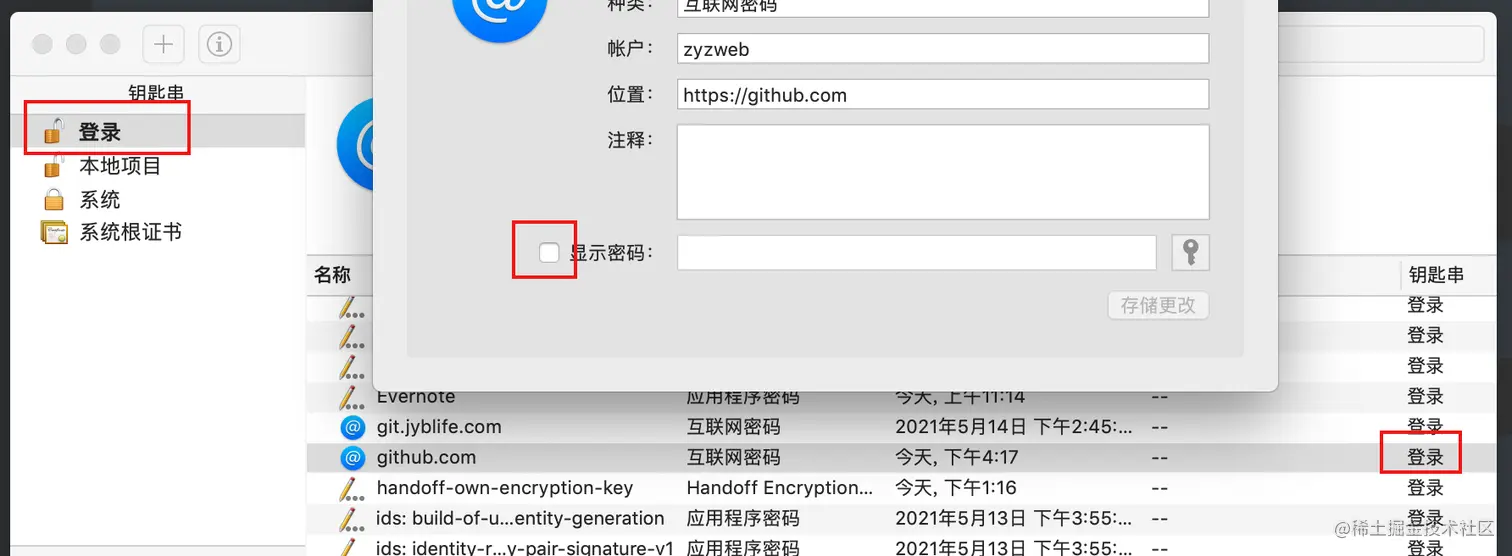 git输入账号密码之后会自动保存在钥匙串中,双击登录,输入2次密码,始终允许,就可以查看密码,下次用git提交就不用输入密码了