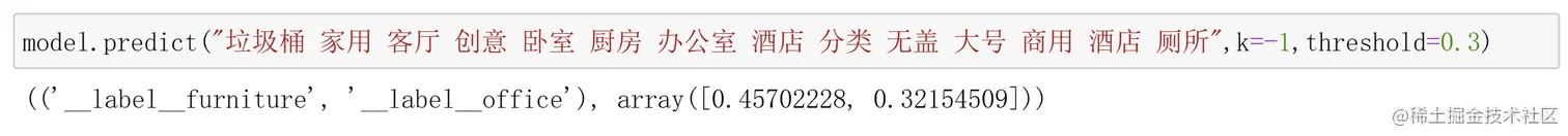 model = fasttext.train_supervised(input="train.txt",lr=0.01,epoch=10,loss='ova')