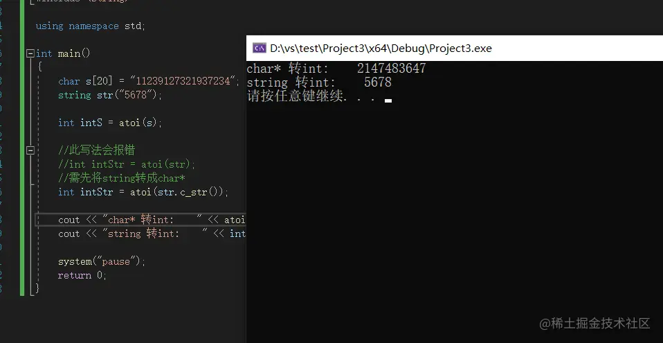 注意:atoi转换到第一个非数字字符为止,c_str()会原样照搬string中内容的。