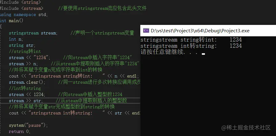 cout << "stringstream int转string: " << str << endl; //输出str