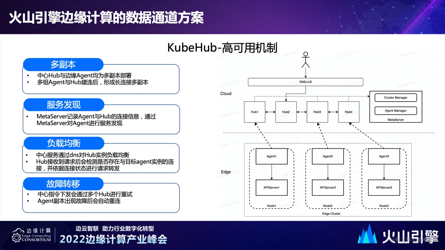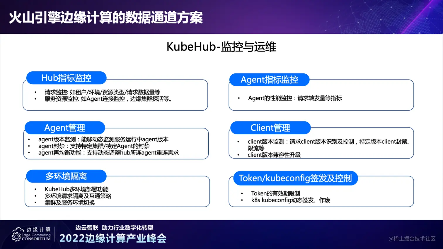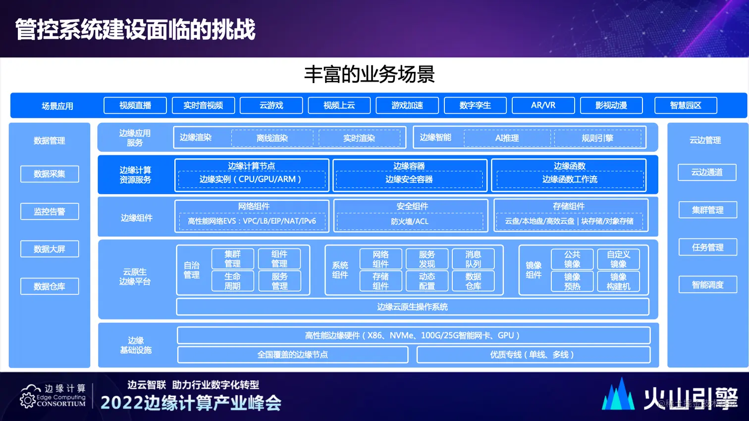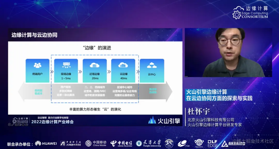 近期,由边缘计算产业联盟(ECC)主办的2022边缘计算产业峰会(ECIS2022)以云端直播形式成功举办,峰会以“边云智联 助力行业数字化转型”为主题,汇聚来自全球的商业领袖、国际组织、政府机构、产业伙伴、学术大咖,全方位探讨边缘计算前沿学术与技术、探索新兴技术与边缘计算的深度结合、展现边缘计算创新应用、聚合边缘计算产业生态。火山引擎边缘计算平台研发专家杜怀宇也在大会的边缘原生分论坛分享了火山引擎边缘计算在云边协同方面的探索与实践。本文根据演讲内容整理。