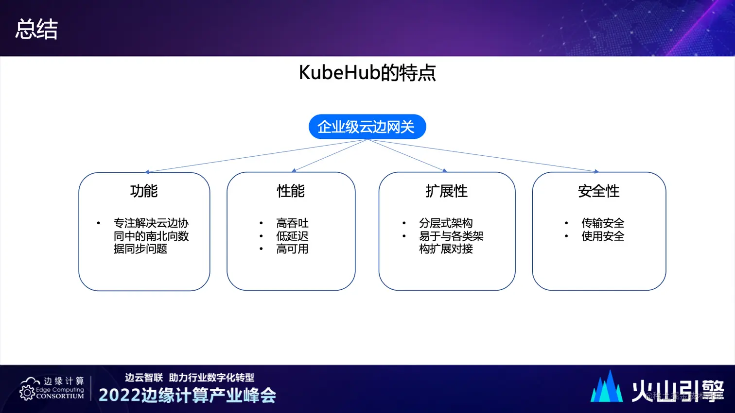 自2021年开始我们将上述的想法逐步落地,形成一套云边网关方案,在内部我们称之为 KubeHub。这套方案的主要特点有四个方面: