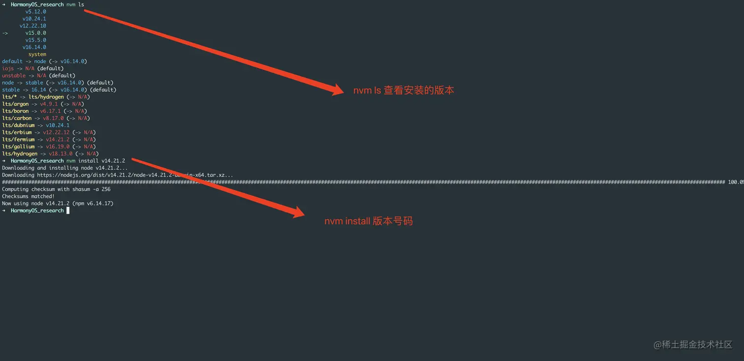 既然这里提到了nvm,那就简单介绍一下,nvm是一个node的管理功能,可以让你随意切换不同版本的node软件,具体的两个常用命令如图所示。