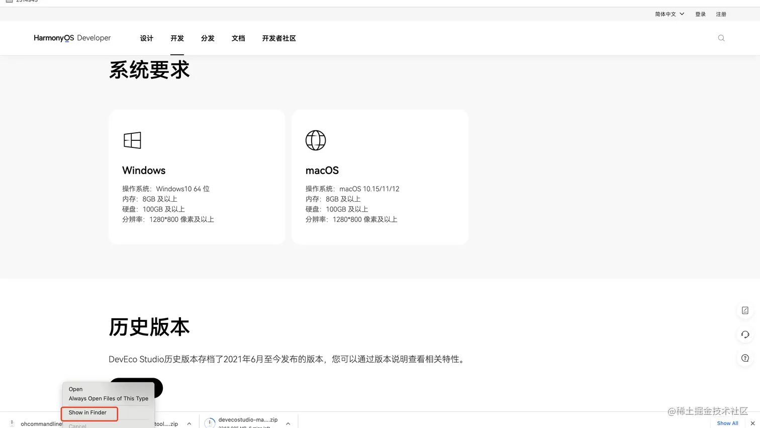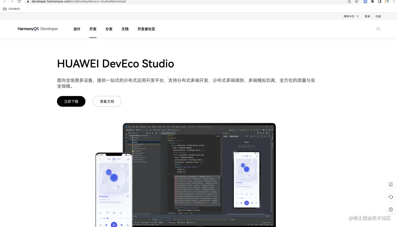 首先我们打开链接developer.harmonyos.com/cn/develop/…,点击立即下载,去下载DevEco Studio。