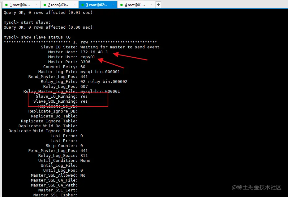 CHANGE MASTER TO MASTER_HOST='172.16.48.3', MASTER_USER='copy01', MASTER_PASSWORD='1lEeMihS&KpO', MASTER_PORT=3306, MASTER_LOG_FILE='mysql-bin.000001', MASTER_LOG_POS=154;