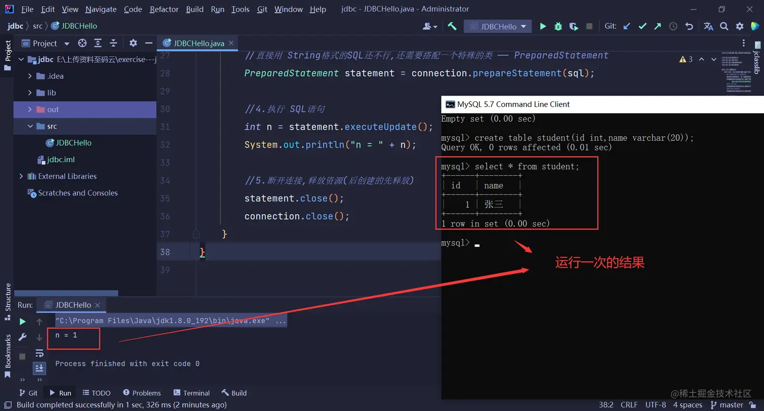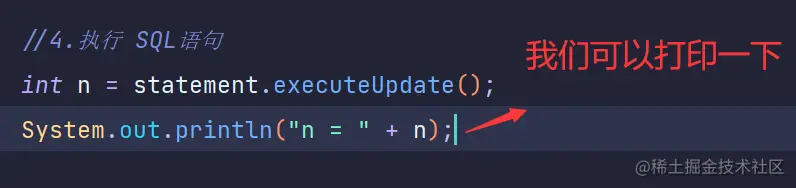executeUpdate 的返回值是一个整数,表示这个操作影响到几行