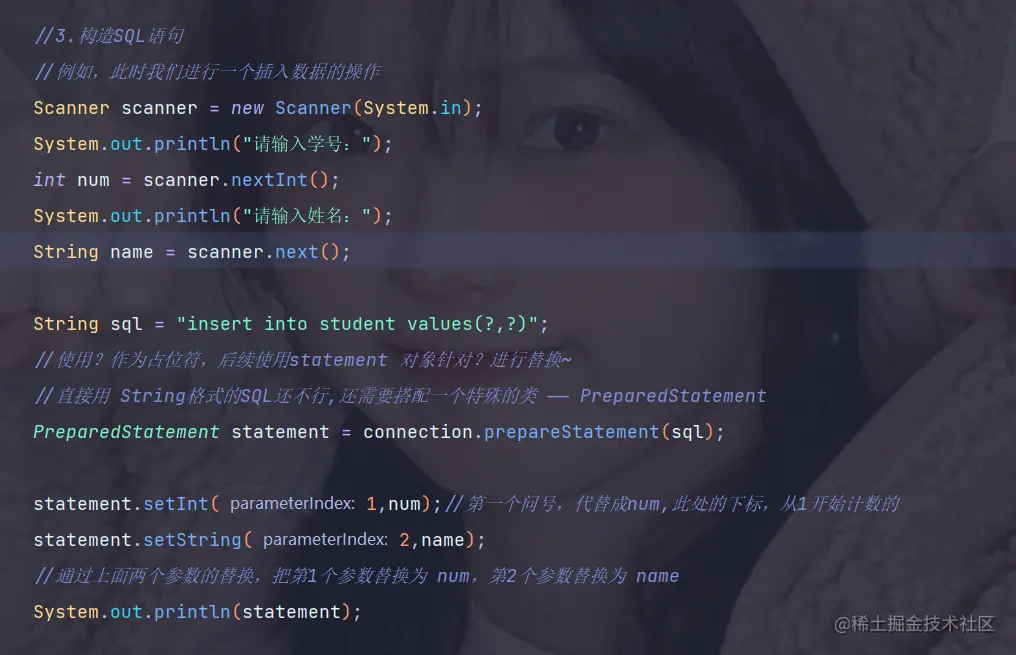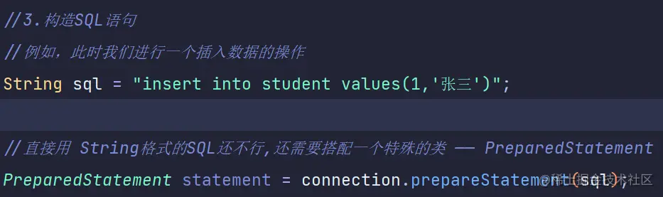 构造SQL语句(JDBC操作数据库,本质仍然是通过 SQL 来描述数据库操作)