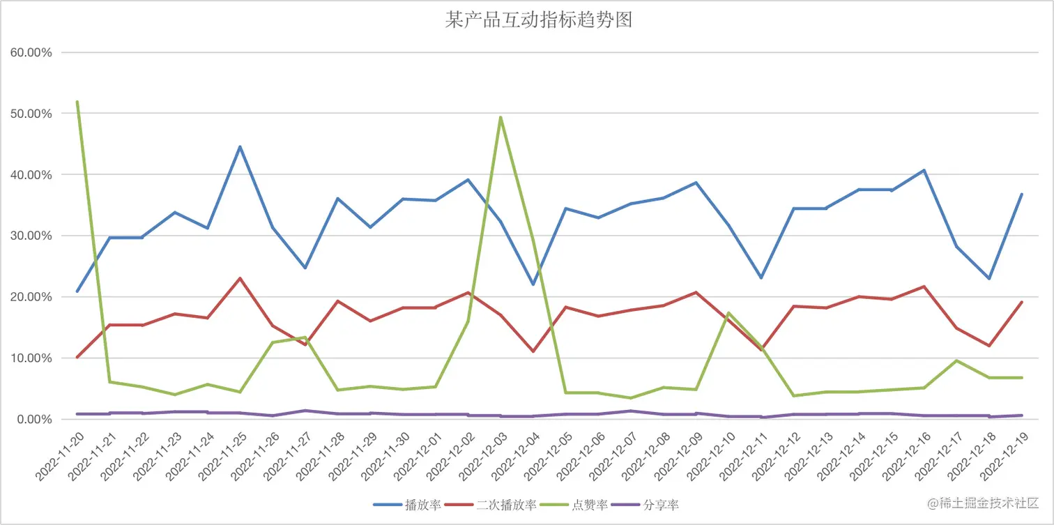 该产品团队通过数据分析发现到一个问题:平台上的视频作品,无论是二次播放率还是点赞率,数据表现都都远远高于分享率。他们判断,视频作品的分享率可能有很大提升空间,尤其是用户点赞过的视频,充分说明了用户对内容质量的认可,那么分享的动机和意愿也会更强。