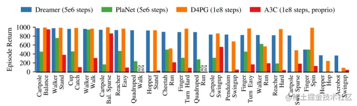 Dreamer 与当时主流方法的性能比较