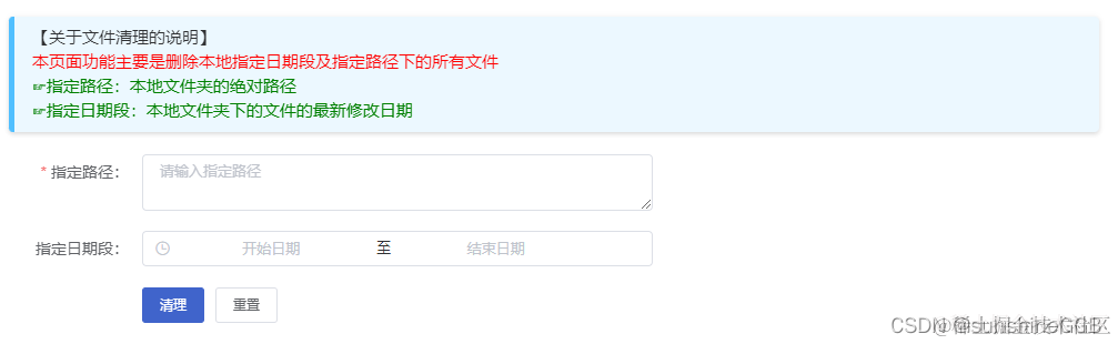 <p style="color: red;">本页面功能主要是删除本地指定日期段及指定路径下的所有文件</p>