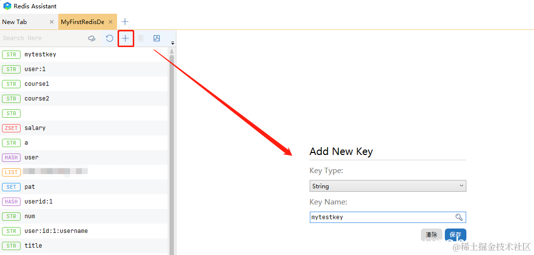 2、新建key,可随时点击左上角工具栏的刷新按钮查看key及其value的变化