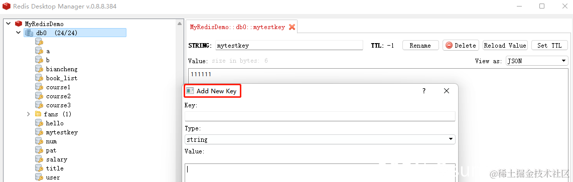 2、新建key,可随时Reload刷新查看key及其value的变化