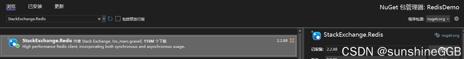 打开NuGet包管理器安装StackExchange.Redis(注:本demo为VS2022新建,默认提供的天气预报的类和控制器)