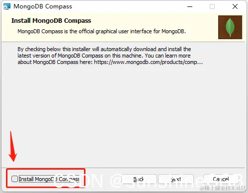 注:MongoDB Compass为MongoDB可视化管理工具,后期如有需要可单独安装,下载地址:www.mongodb.com/try/downloa…
