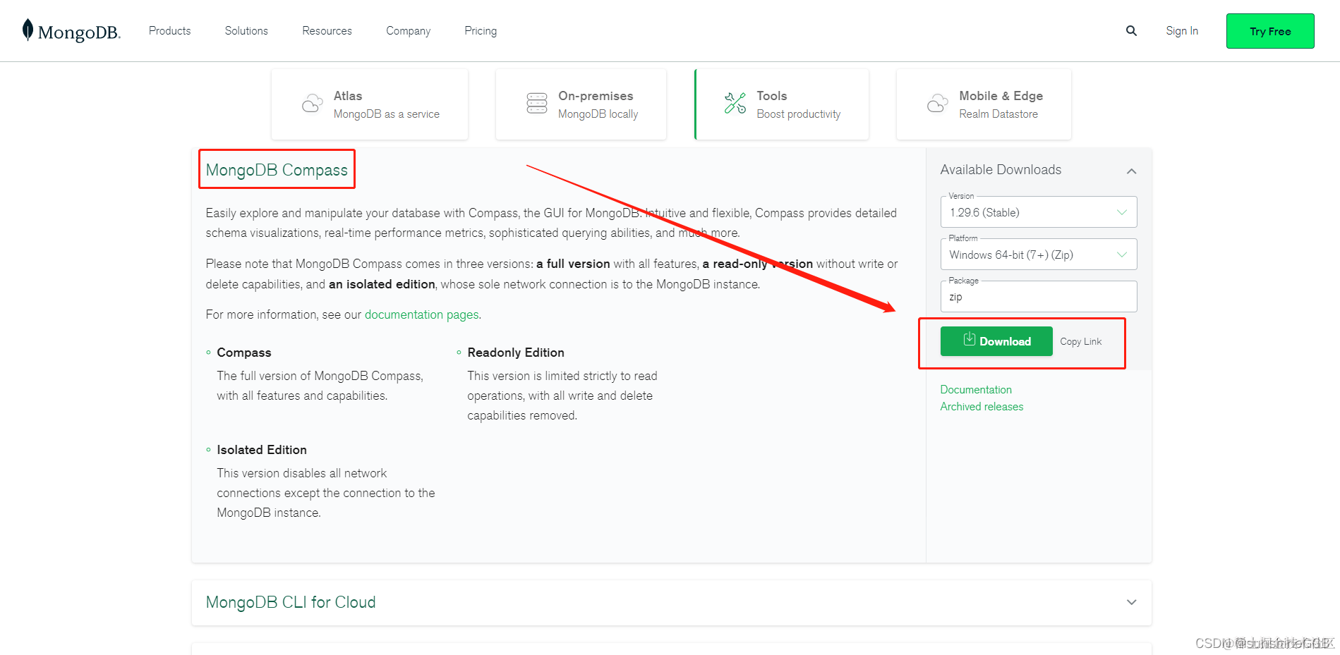 MongoDB Compass 预编译二进制包下载地址:www.mongodb.com/try/downloa…